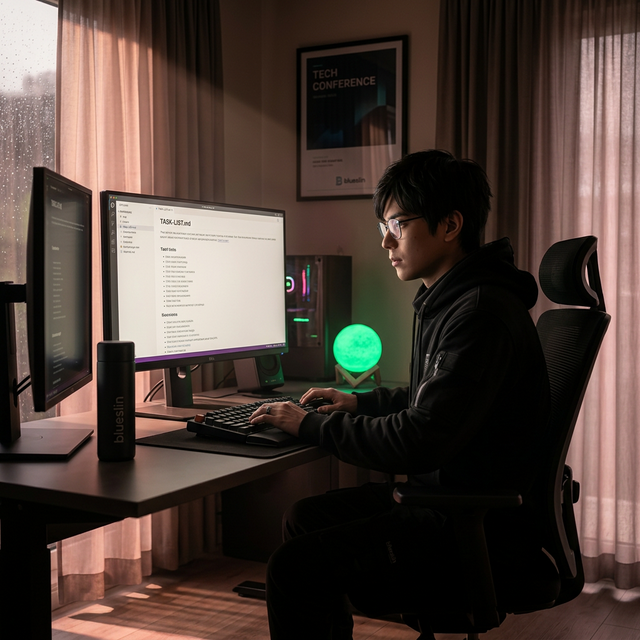 家里的台式机还开着,他坐下,唤醒显示器。终端窗口还在,显示着昨天的日志。他敲了几下键盘,打开 TASK-LIST.md。