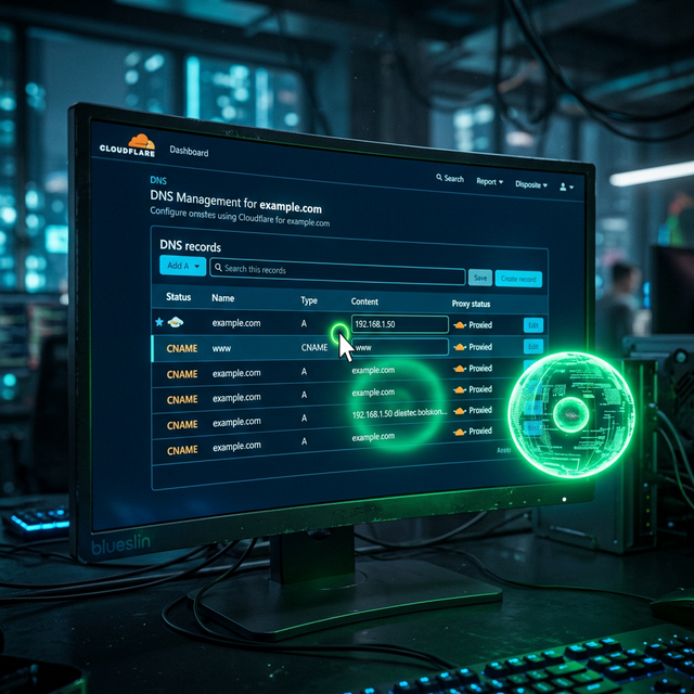 我打开 Cloudflare 控制台,按照小子的指引,添加了两条记录:
