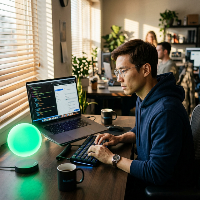 上午十点,阳光透过百叶窗照在工位上。